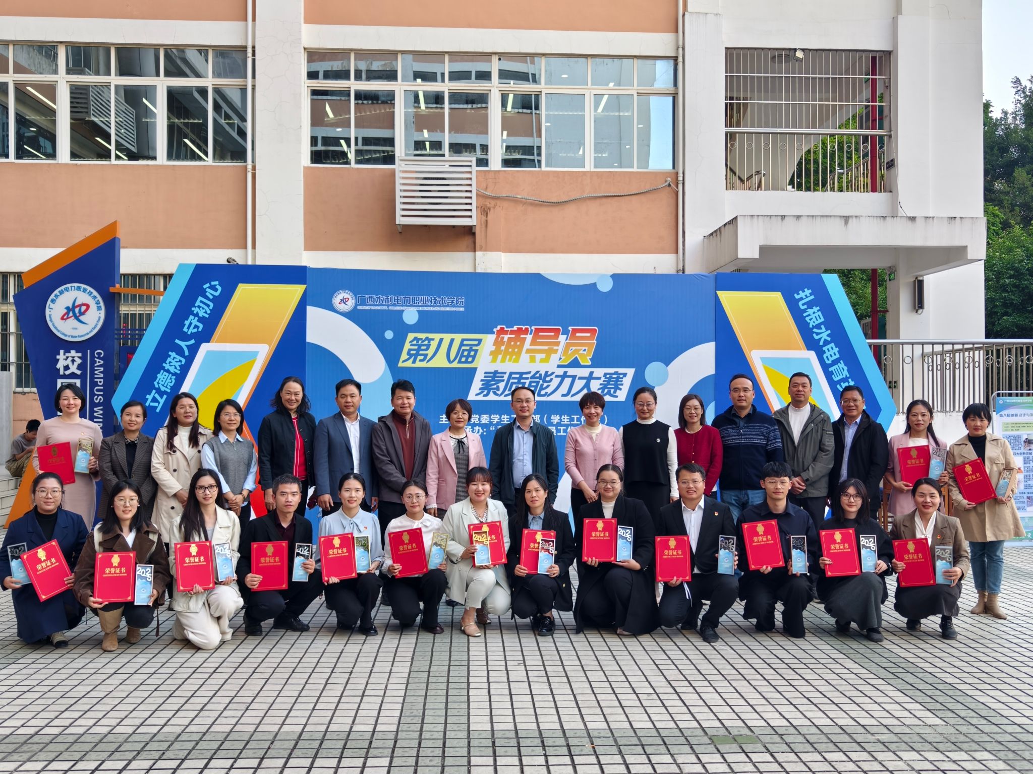 [本网讯]近日,2025年广西“宏志助飞 筑梦未来”大学生职业生涯规划大赛决赛在广西工商职业技术学院圆满落幕。我校水利工程学院教师刘丽亚、罗荣慧与党委学生工作部(学生工作处)教师潘日姣组成的参赛团队从全区各高校参赛队伍中脱颖而出,斩获教师团队赛道金奖(第...