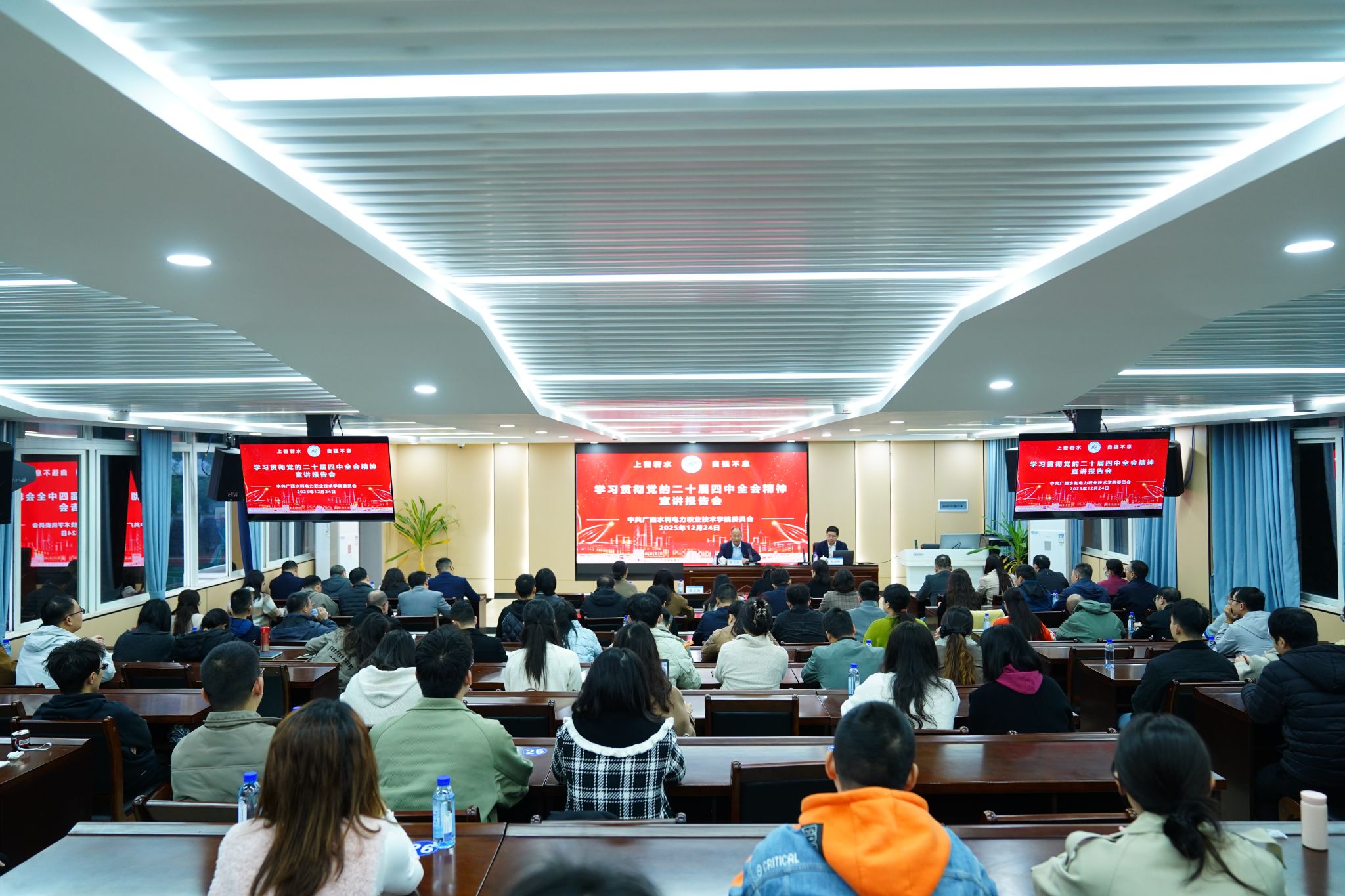 [本网讯]2025年12月24日上午,学校在长堽校区召开学习贯彻党的二十届四中全会精神宣讲报告会,自治区党委讲师团特聘教授(专家)、广西民族大学党委副书记邓国彬作宣讲报告,学校党委副书记、纪委书记邓文勇主持会议。宣讲会上,邓国彬教授紧紧围绕深刻领会党的二十...