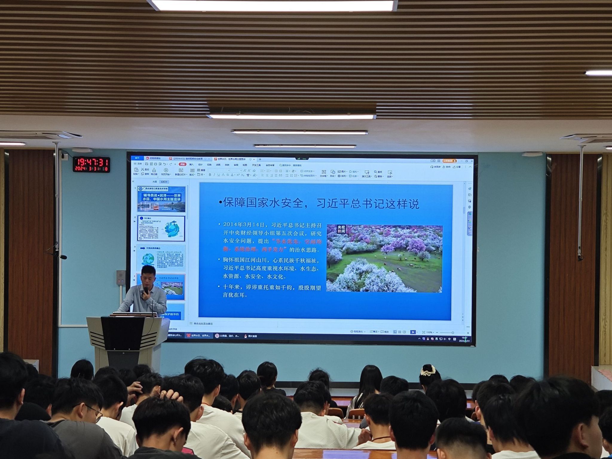 本次班会以“珍惜水资源,共建美好家园”为主题,辅导员通过演讲PPT的形式,向同学们讲解了水资源的珍贵性和节约用水的重要性。接着,学生们分享了对保护水资源和节约用水的看法,就水利知识在实际生活中的应用,以及如何在日常生活中实践新时代水利精神展开了讨论,进一步强化了水资源保护的意识。会上,学生们还通过观看《生命之水》,学习了习近平总书记提出的“节水优先、空间均衡、系统治理、两手发力”的治水思路。