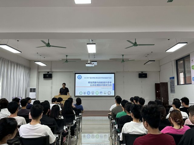 在讲座现场,张宝军教授以“水处理赛项”为例,提出了对师生同赛趋势的探讨以及师生同赛对技能提升的思考,并介绍了江苏省师生同赛促进学生技能竞赛的先进经验。