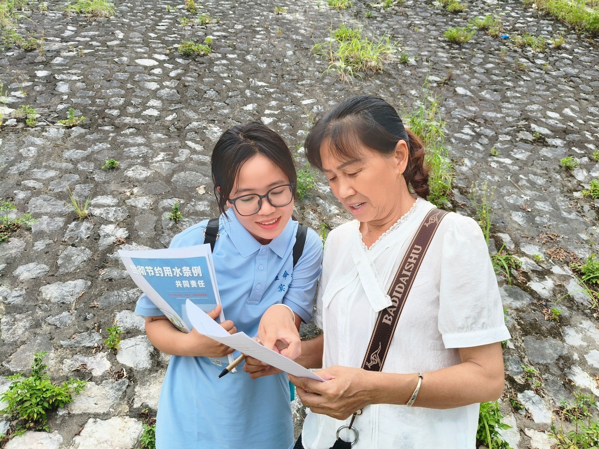 为深入了解群众对水法规的认知情况,实践团在融江沿岸开展了普法宣传活动,通过向群众发放调查问卷,面对面交流了解当地居民对水法规的知晓度与对水行政执法的满意度情况,并向居民普及《中华人民共和国水法》《节约用水条例》等法律法规,推动法治理念深入人心。