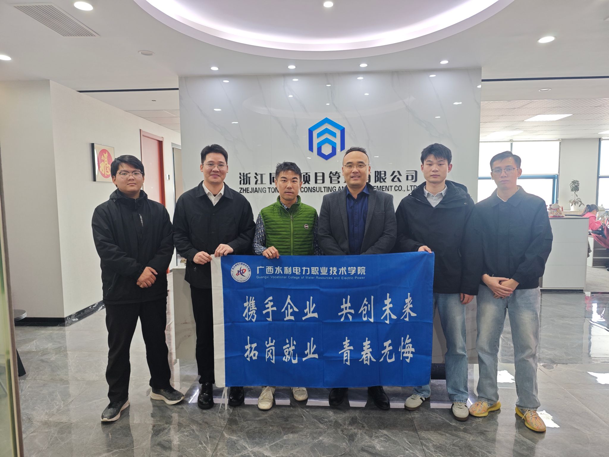 [本网讯]为深入了解2023级学生岗位实习情况,精准对接企业用人需求,扎实推进访企拓岗工作,12月10日,土木建筑工程学院党总支梁中超一行赴浙江省开展走访调研,实习指导老师韦律权、辅导员苏健陪同走访。