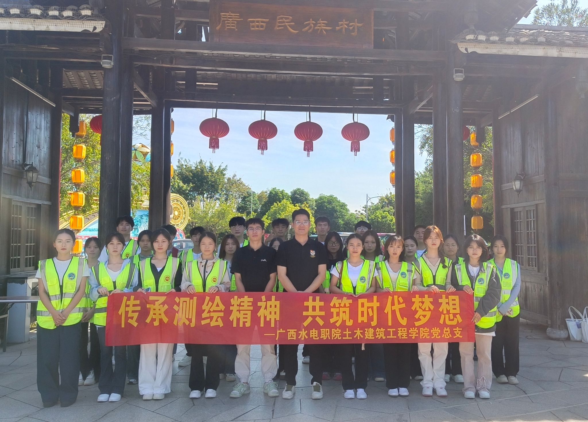 为做好“党建带团建、党建带群建”相关工作,10月25日,土木建筑工程学院党总支部组织教师党员、学生到广西民族村开展“传承测绘精神,共筑时代梦想”主题活动。学生党支组织委员苏健专任老师韦律权 24 级市政工程技术26名学生参加活动。