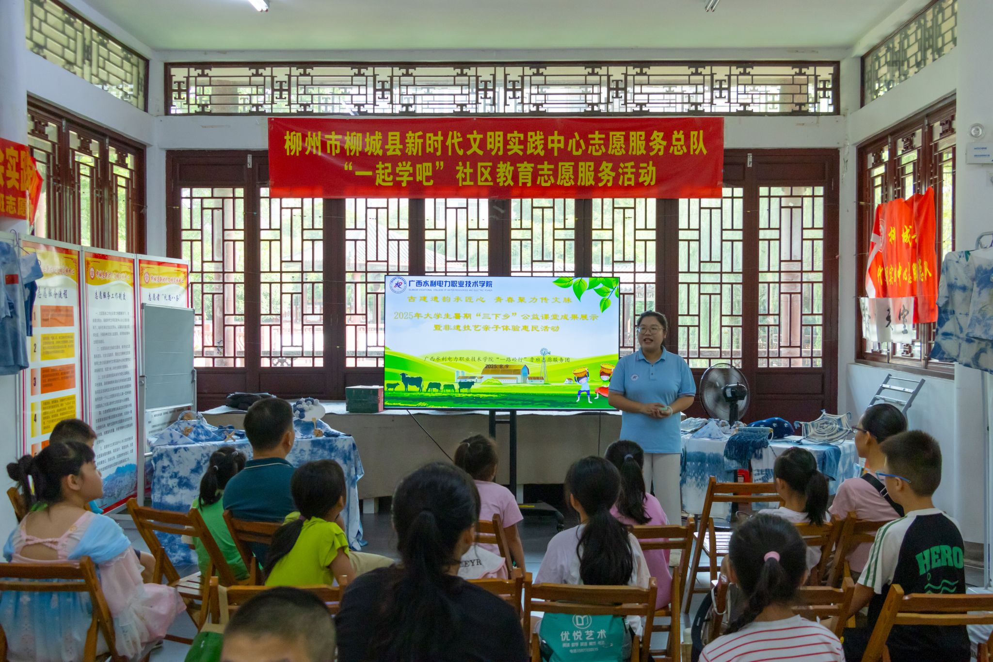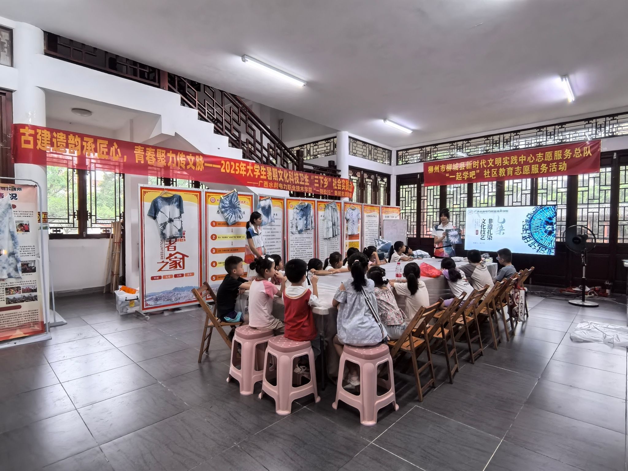 此外,实践团在柳城县新时代文明实践中心和柳城县城北小学开展“古建里的文化密码”、“指尖上的非遗技艺”等科普公益课堂,用模型、手绘、实操等形式,让青少年读懂家乡建筑中的历史基因,触摸历史的脉搏,感受非遗技艺在手中传承。