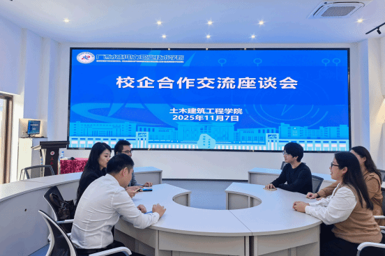 为精准搭建就业合作平台、拓宽毕业生就业渠道、深化校企合作内涵,11月7日上午,土木建筑工程学院工程管理教学团队负责人陶丹、建设工程监理专业负责人解双与广西建工第一建筑工程集团有限公司、广联达科技股份有限公司、广西安斯福桂建设工程有限公司、一砖一瓦科技有限公司、展示网(北京)科技有限公司等企业相关负责人进行座谈交流。