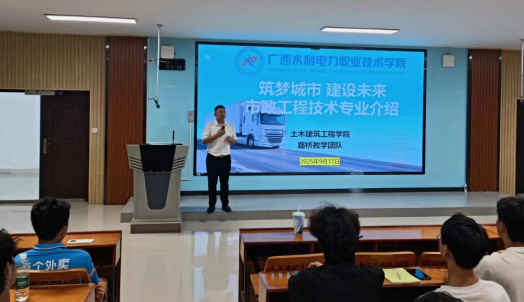 [本网讯]帮助新生深入了解所学专业,科学规划大学生涯,消除认知困惑,明确未来学习与职业发展方向9月17土木建筑工程学院路桥工程教学团队组织2025道路与桥梁工程技术、市政工程技术专业新生召开专业介绍会。