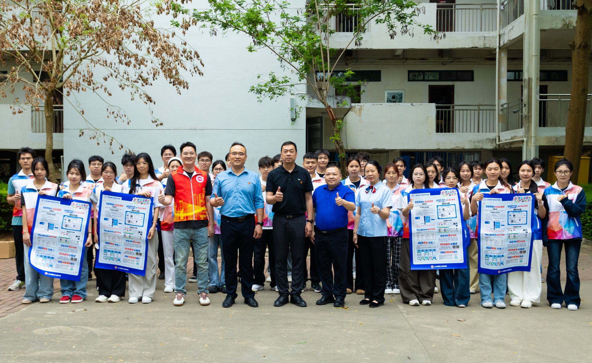 部门领导、学院领导、宿舍管理员共同深入宿舍张贴水电生活指南海报