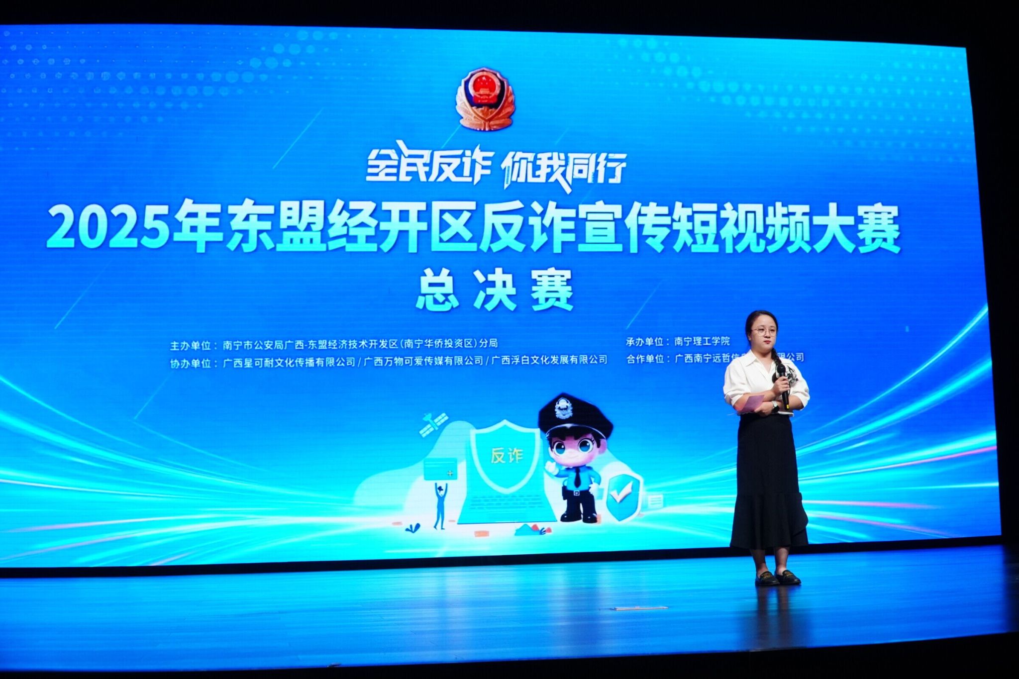 [本网讯]10月16日,2025年东盟经济开发区反诈宣传短视频大赛在南宁理工学院圆满落幕。在本次大赛中,学校选送的两部作品《AI变身术》与《刷单和租借银行卡骗局》表现优异,分获一等奖和二等奖,充分展现了我校在反诈宣传教育领域的创新意识与实践能力。