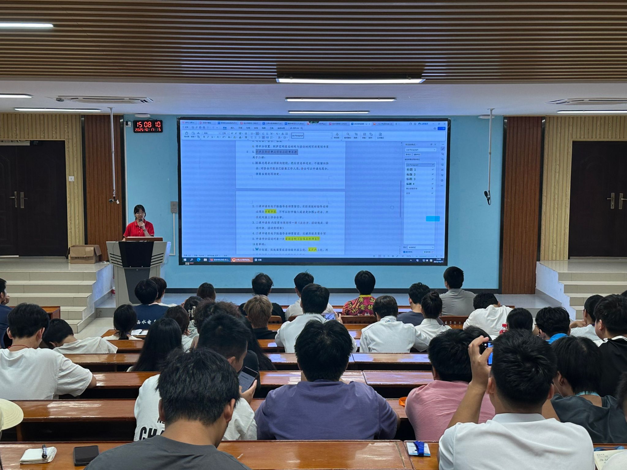 为深入贯彻落实习近平总书记关于青年工作的重要思想,强化党建带团建工作机制,推动学生社团规范管理与思想引领深度融合,10月17日,学校团委党支部在里建教学102楼阶梯教室组织开展了2025年秋季学期学生社团负责人工作培训会。团委党支部教师党员梁钦健出席作专题指导,全校45个学生社团负责人及主要学生干部共计70余人参会。