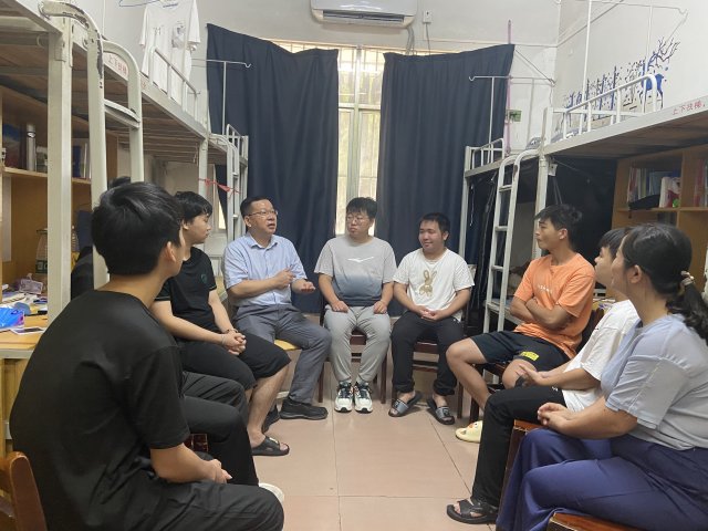 李林校长来到2023级新生宿舍,与同学们亲切交流,代表学校向他们致以节日的问候和诚挚的祝福,他详细地了解同学们的假期安排、学习生活环境、学业规划情况,勉励新生要坚定理想信念,潜心学习钻研,练就强健体魄。