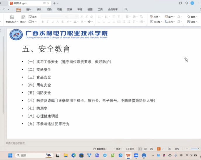 班会上,辅导员们围绕实习安全和五一假期安全两大主题,详细讲解了实习过程中可能遇到的风险和防范措施,同时强调了假期期间的安全注意事项,如岗位安全操作,防溺水,禁止酗酒等问题。辅导员们还结合具体案例,生动形象地展示了安全问题的严重性和后果,使同学们深刻认识到安全的重要性。