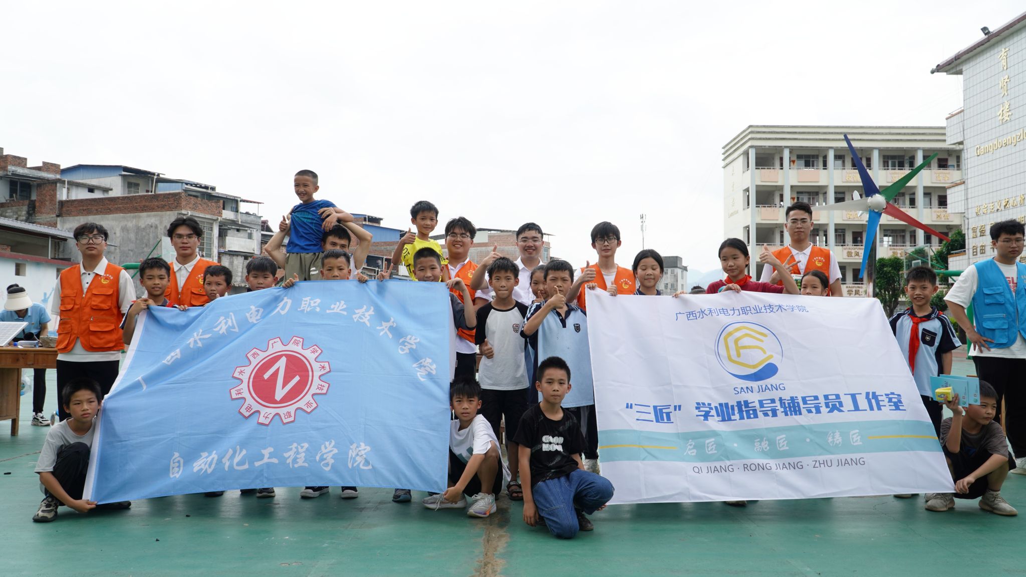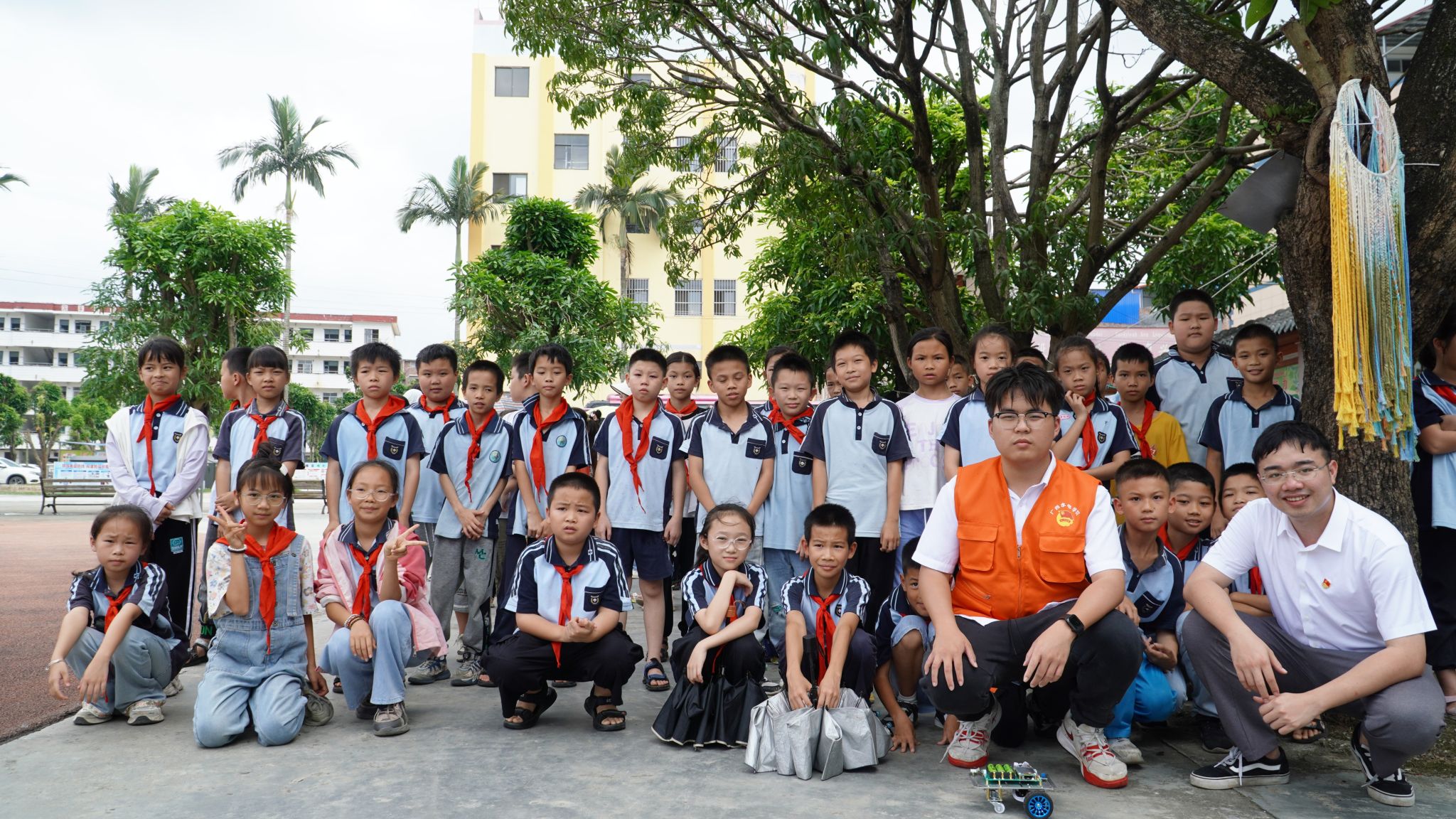 【本网讯】5月27日,学校团委携手各学院师生,走进上林巷贤镇中心学校和双罗小学,开展第三批次文化科技卫生“三下乡”活动。本次活动中,自动化工程学院团委林睛岚老师及三位学生代表带来了AGV智能小车和同学们自制的电器进行展示。