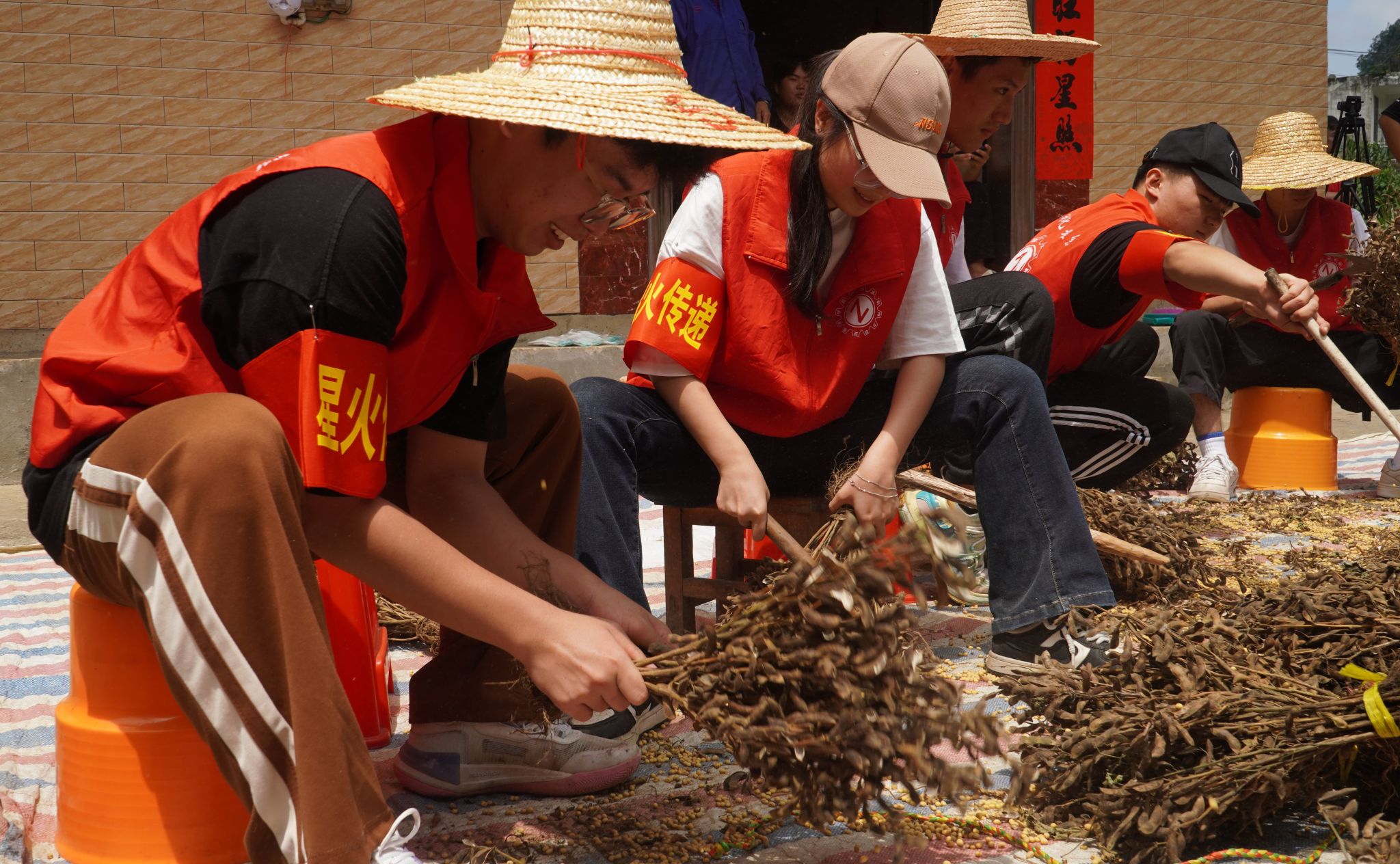 帮助村民打黄豆