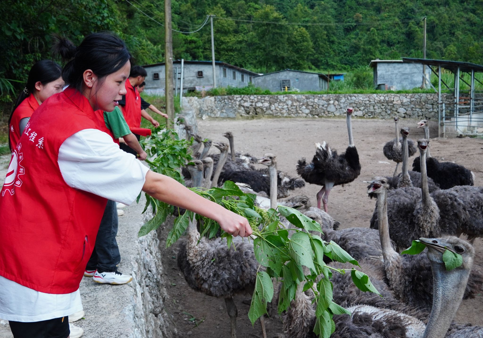 黄昏时分,实践团成员们又踏上了新的探索之旅,前往当地鸵鸟养殖场参观学习。在养殖场内,他们近距离观察了鸵鸟的生活习性,了解了鸵鸟养殖的技术与市场前景,开拓了眼界,也加深了对岜林村及其周边地区的认识与了解。