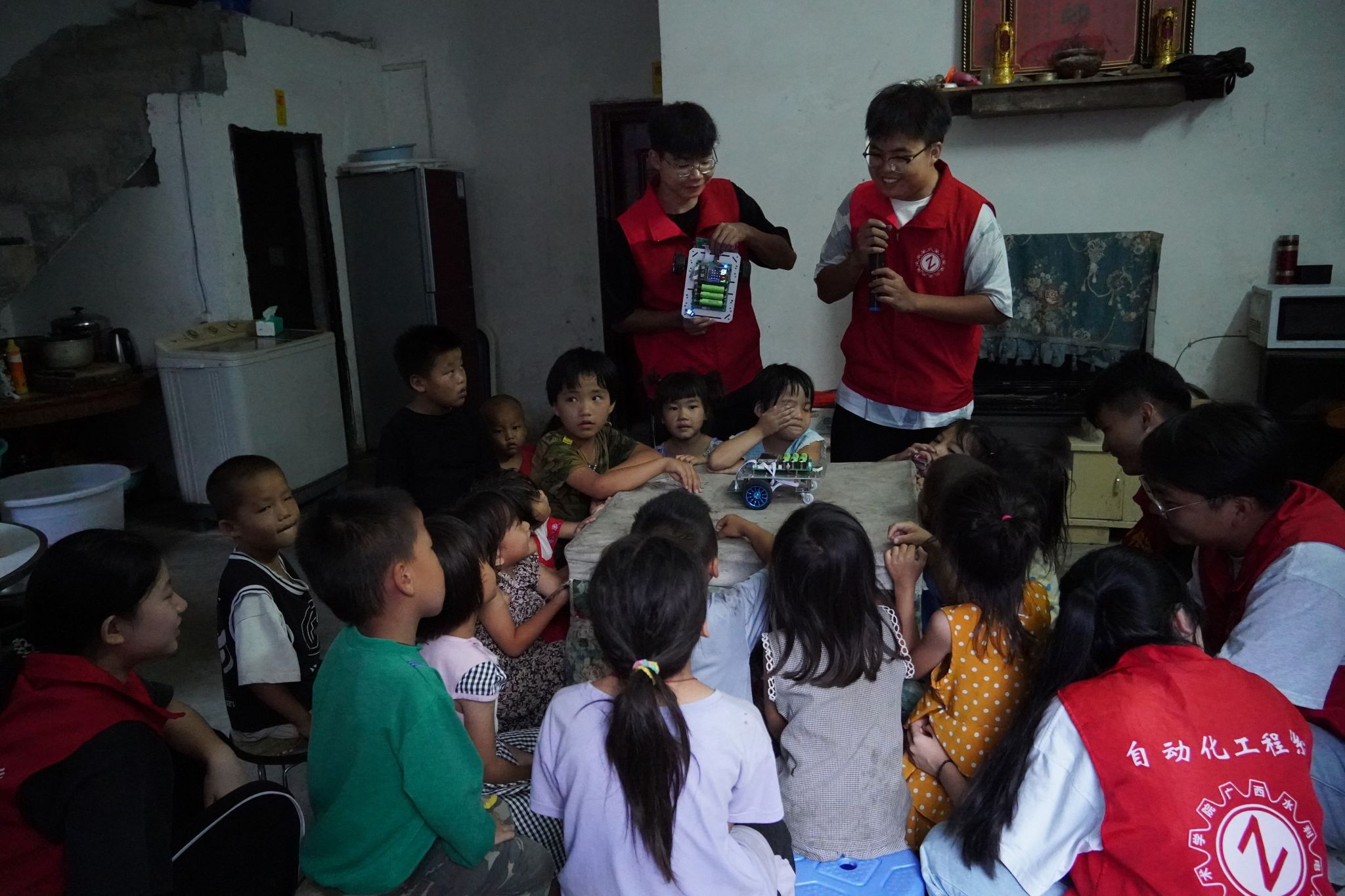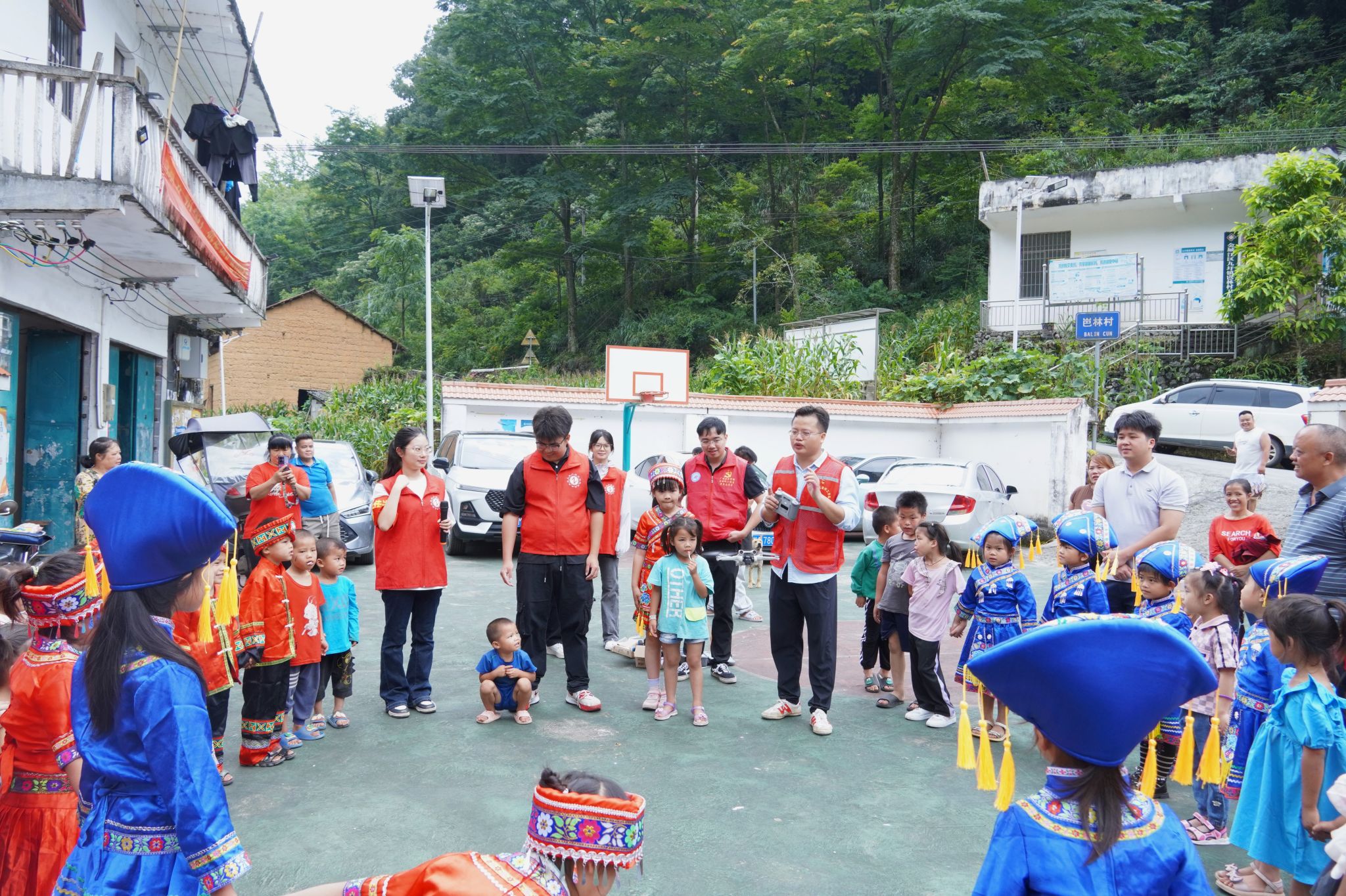 团队并未停歇,午后他们利用自动化专业知识,在村委的精心指导下,迅速投入到路灯安装工作中。随后团队抵达瑶族居民安置点,他们通过生动的讲解,为小朋友送去了安全用电常识,提高了孩子们的安全防范意识;通过趣味横生的科技展示,激发了孩子们对科学的无限向往;更有精心设计的互动游戏,让欢声笑语在安置点回荡,加深了不同民族间的友谊与理解。