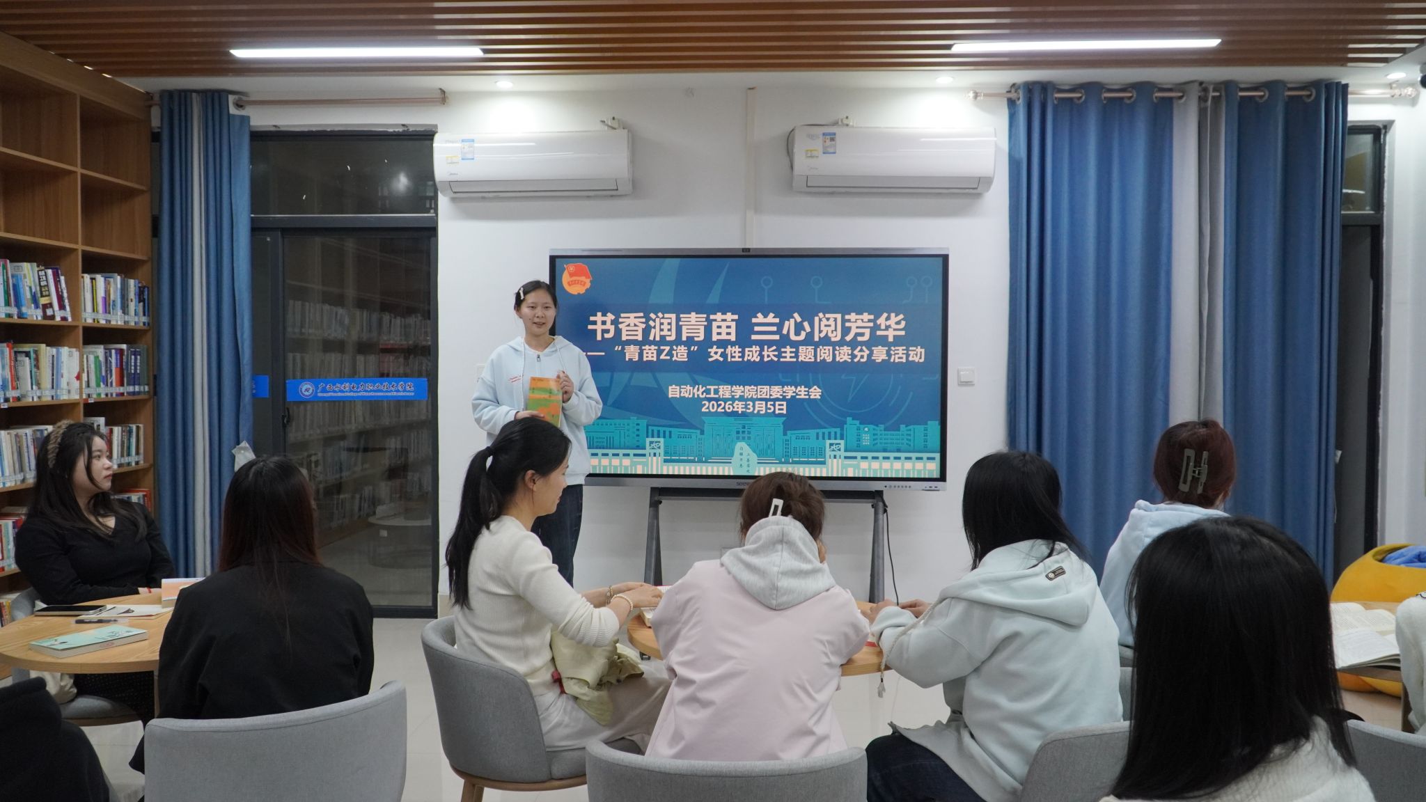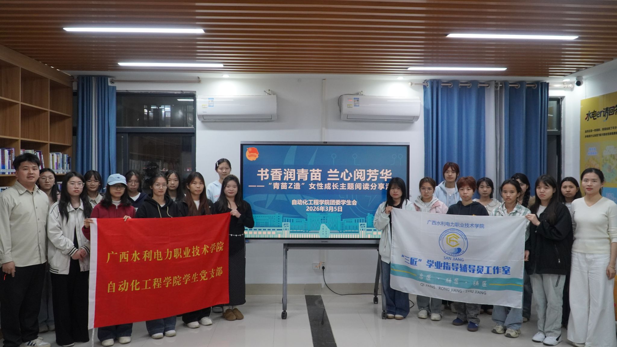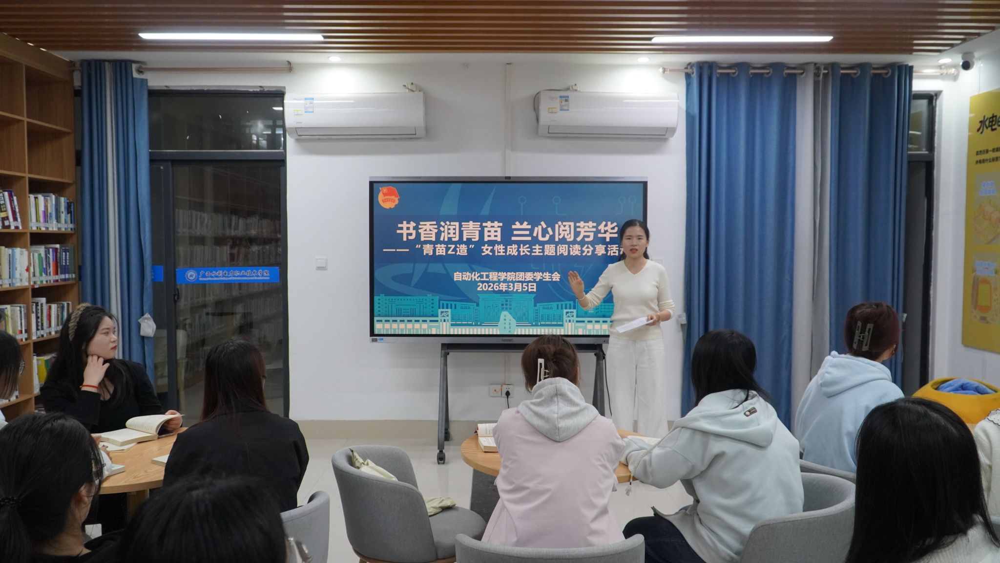[本网讯]3月5日,为深化“青苗Z造”育人品牌建设,落实书香校园建设要求,引领青年学子汲取精神力量、树立远大理想,在“三八”国际劳动妇女节到来之际,广西水利电力职业技术学院自动化工程学院在和园一站式读书阅览室举办,书香润青苗 兰心阅芳华——“青苗Z造”之“兰心蕴锦绣 高志正青春”“三八”国际劳动妇女节主题阅读分享活动。