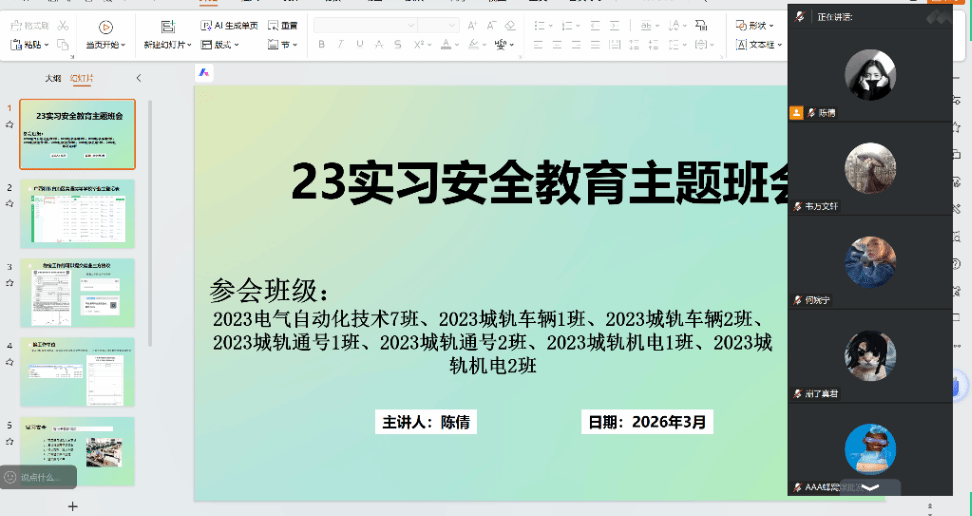 此次主题班会的召开,不仅让同学们对实习期间可能面临的安全风险有了更清晰的认识,也进一步压实了实习安全责任。自动化工程学院将持续关注学生的实习动态,坚持“日报告”“零报告”制度,不断完善家校企协同机制,为学子们顺利毕业、平安就业保驾护航。(尹伊美/图文)