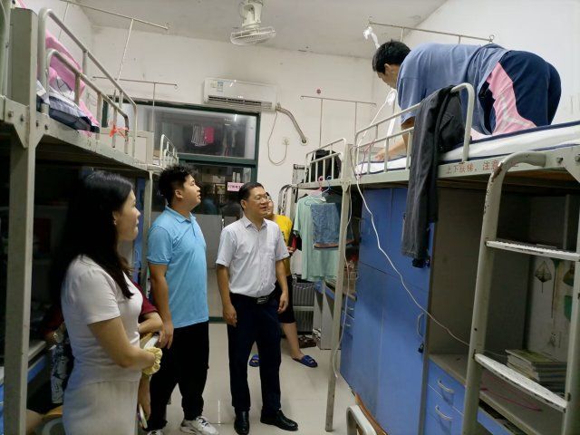当晚,在学院党总支书记石庆华的带领下,2023级辅导员走进了新生宿舍,与同学们进行面对面地亲切交流,了解同学们日常生活适应情况,帮助他们解决在学习、生活及思想上所遇到的问题。鼓励同学们注意财物安全,增强防火和用电安全意识,努力营造安全、文明、和谐的宿舍环境。