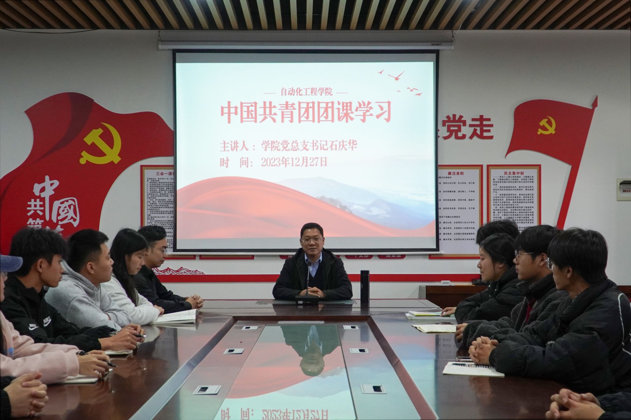 [本网讯]12月27日,自动化工程学院在学院会议室开展了“党总支书记讲团课”活动。团课由学院党总支书记石庆华主讲。团委负责老师林睛岚、各班团支书参加了活动。