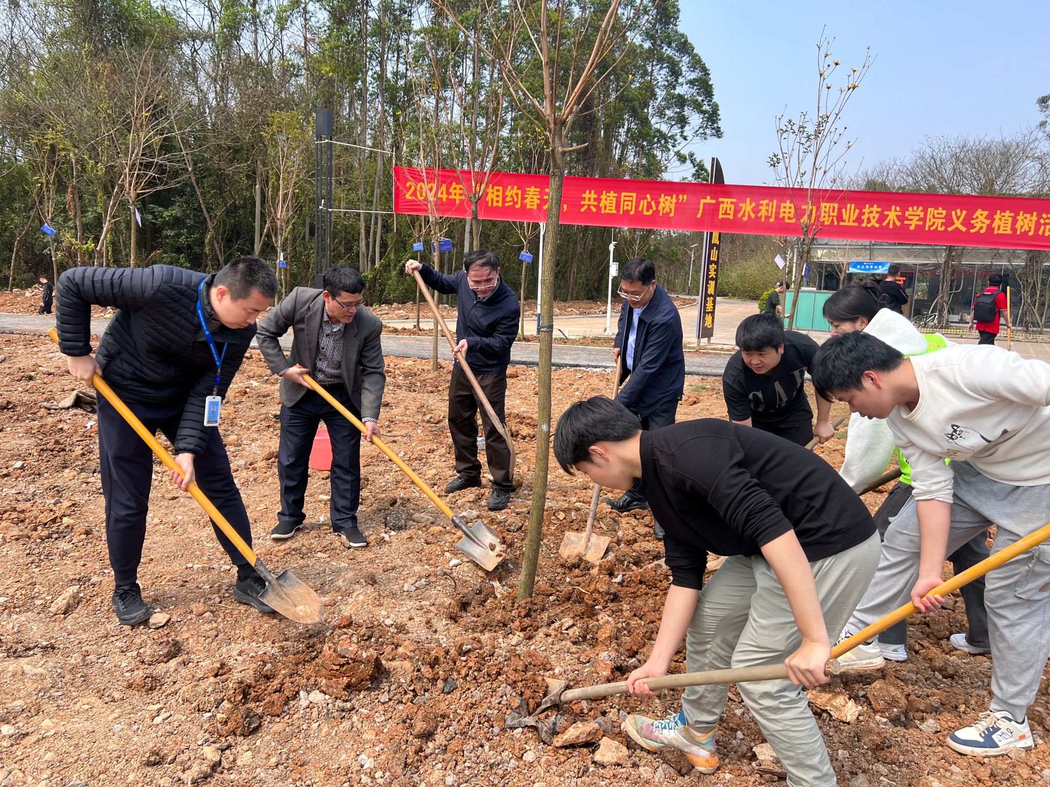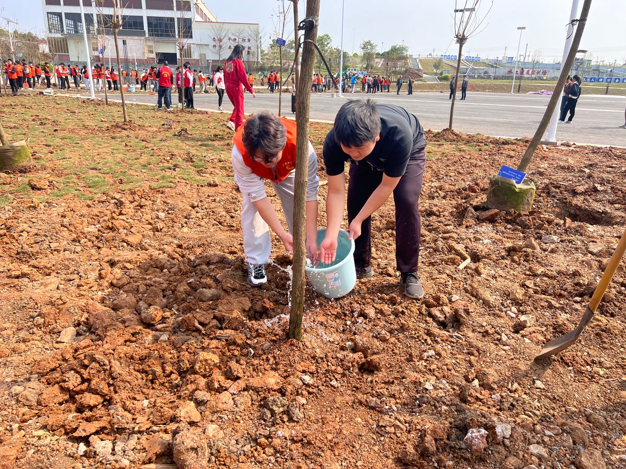 活动中,大家热情高涨,干劲十足,挖坑、栽树、填土、浇水、扶苗,现场呈现出一片繁忙而有序的景象。在温暖的春风中,师生默契配合,一起播下希望的种子。