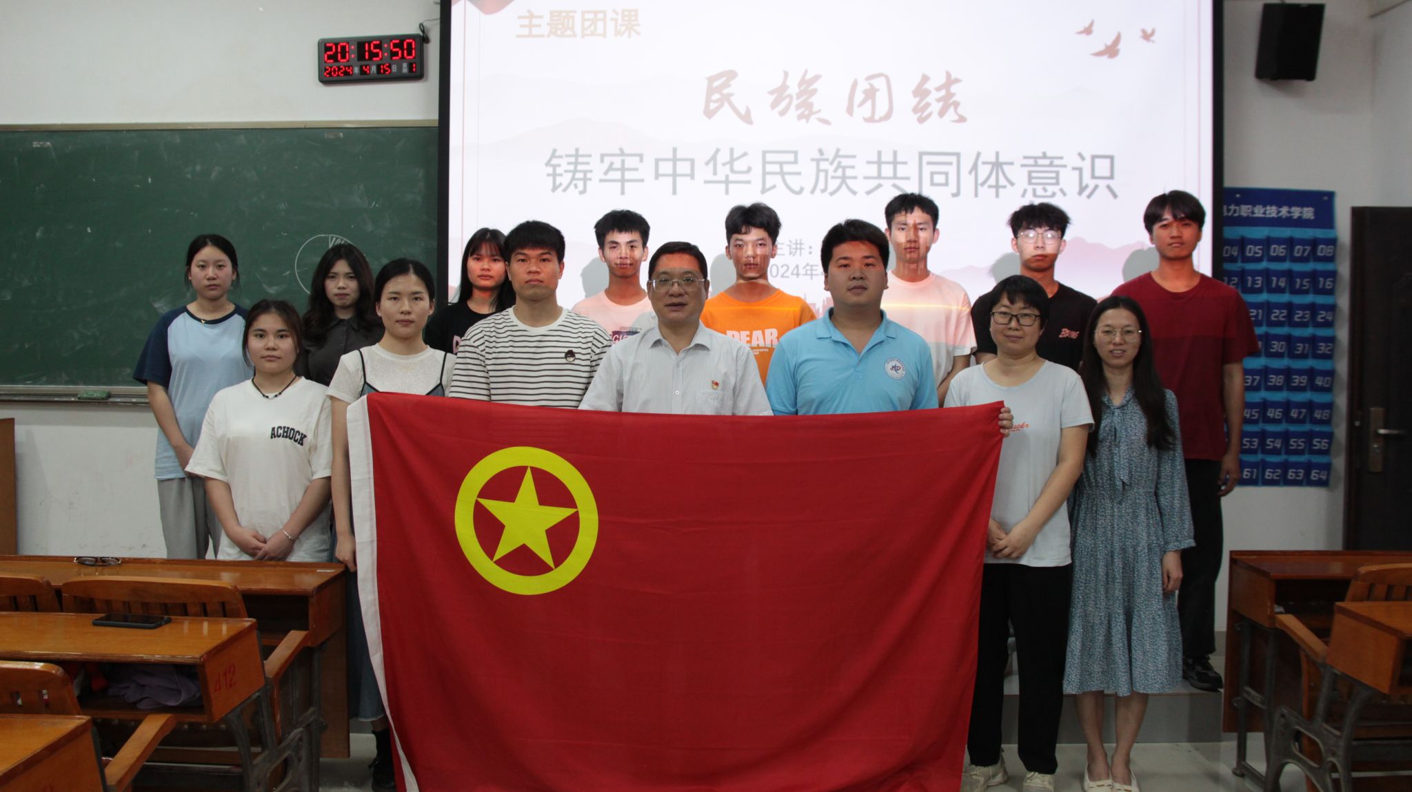 [本网讯]4月15日,自动化工程学院团委在里建校区教学楼412教室组织开展“铸牢中华民族共同体意识”主题团日活动。学院党总支书记石庆华以“民族团结 铸牢中华民族共同体意识 ”为题,为师生们上了一堂生动的主题团课。