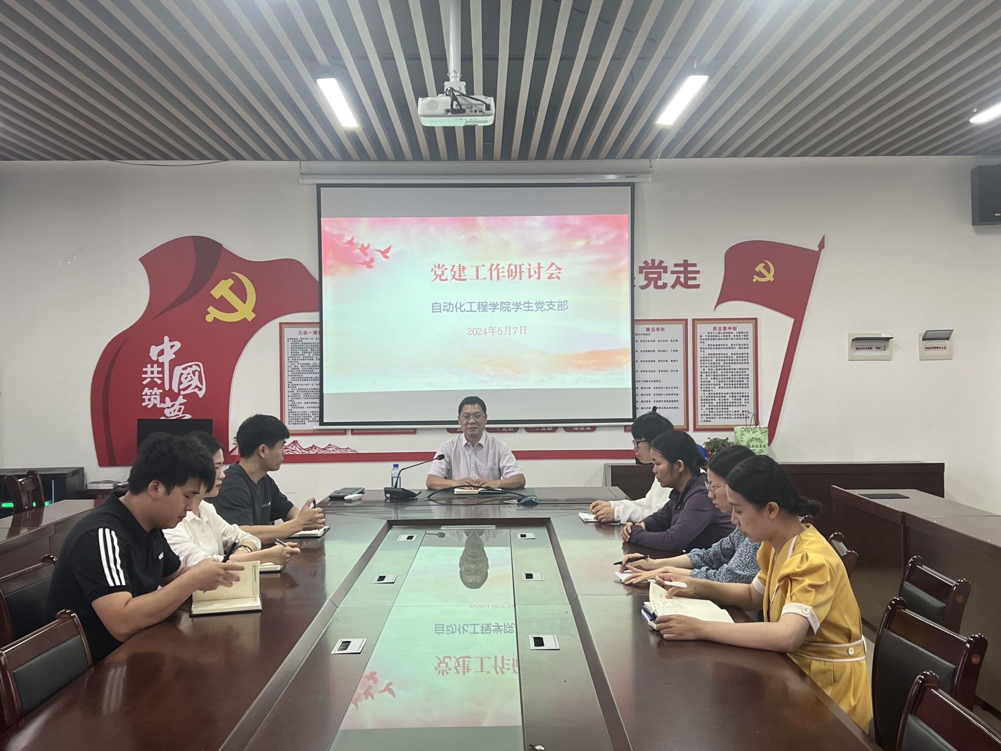 [本网讯]5月7日,自动化工程学院学生党支部在自动化工程学院党员活动室召开了党建工作研讨会。学院党总支书记石庆华、学生党支部全体党员参加了会议。