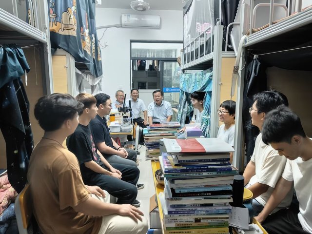 [本网讯]9月4日晚,学校校长李林、副校长蒋文沛带队走访自动化工程学院学生宿舍,面对面了解学生的思想动态及学习、生活情况,为同学们送去关心和问候。学生工作处处长李晓红、自动化工程学院党总支书记石庆华及辅导员陪同。